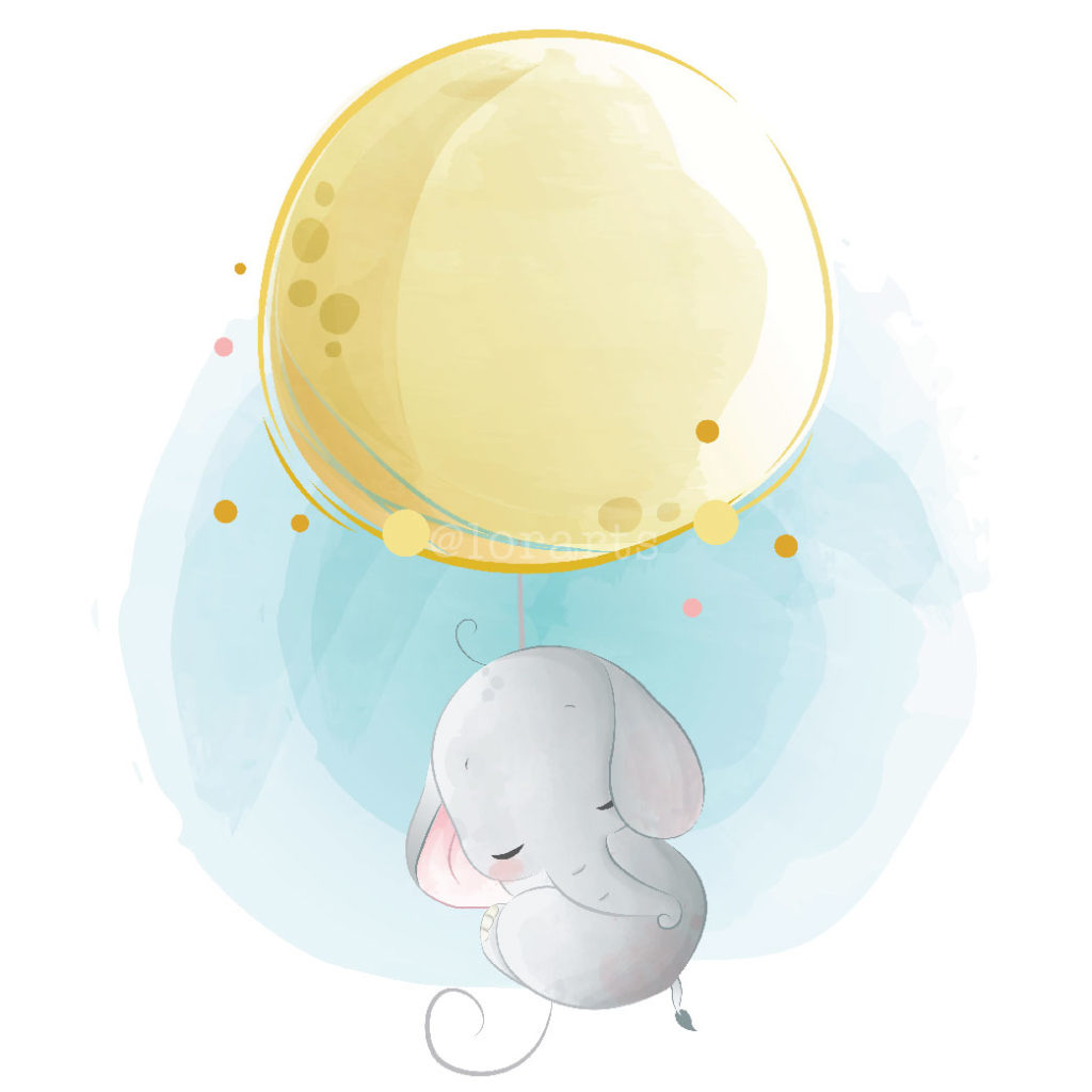 Baby Elephant Flying with a Moon Balloon