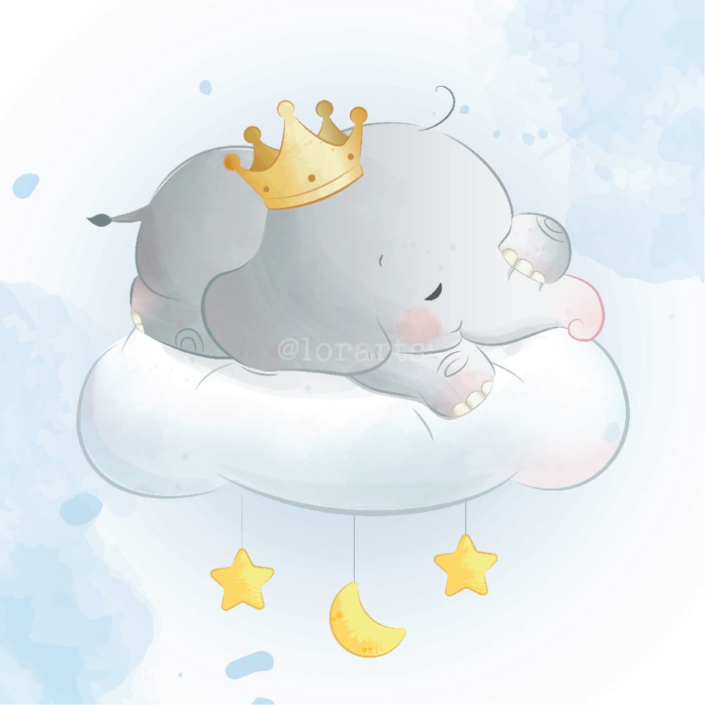 Baby Elephant Sleeping on Cloud