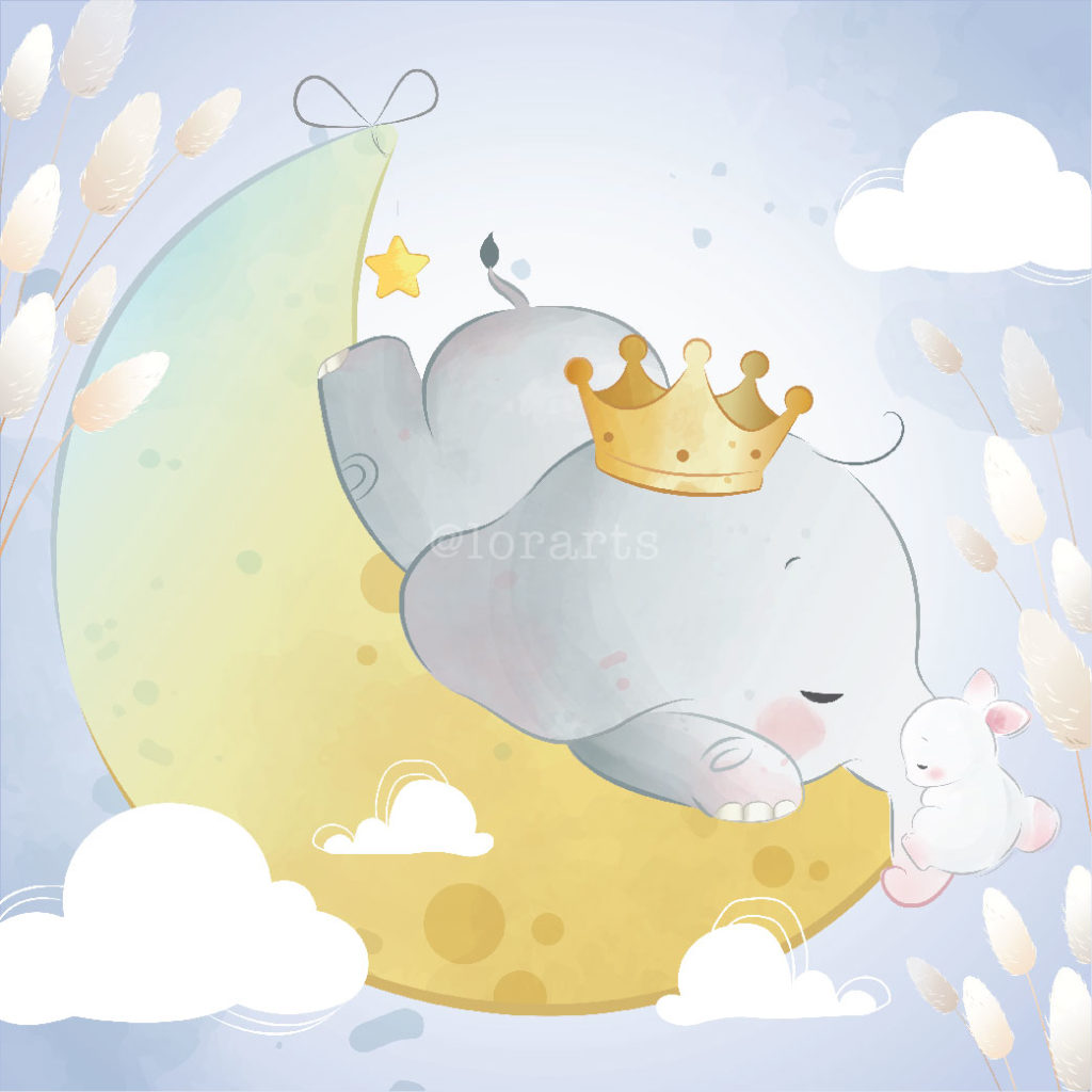 Baby Elephant Sleeping on Moon